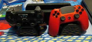 Due controller per PlayStation 4, uno nero e uno rosso. - Controller wireless. - Design ergonomico.