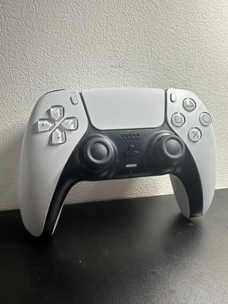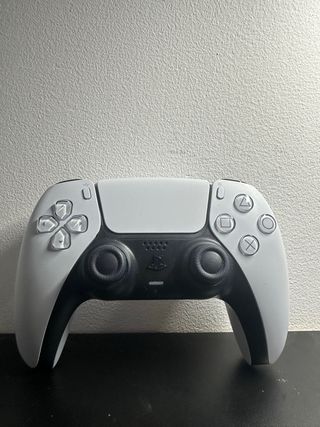 Controller wireless per PlayStation 5. - Design bianco e nero. - Pulsanti e stick analogici. - Touchpad centrale.