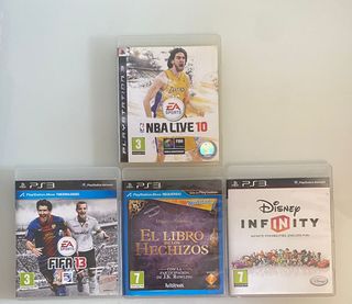 Pacchetto di quattro videogiochi per PlayStation 3. - FIFA 13: 5€ - NBA Live 10: 5€ - Disney Infinity: 5€ - Il Libro degli Incantesimi (Wonderbook): 10€