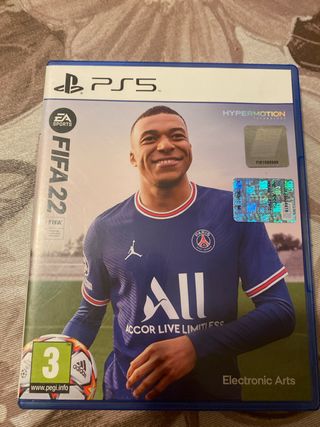 Videogioco FIFA 22 per PlayStation 5. - Copertina con Kylian Mbappé. - Tecnologia HyperMotion. - Classificazione PEGI 3.