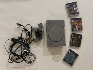 Console PlayStation 1 grigia completa di controller e cavi. - FIFA 2000 - Formula One 99 - Spec Ops - Bust A Move - Colin Micrae ps: i giochi hanno apposito libretto e custodia originale.