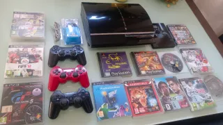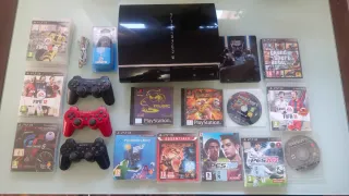 Consolle PlayStation 3 da 60 giga retrocompatibile con PlayStation 1 e 2, accessori e videogiochi inclusi. Include: console, due controller Sony (uno nero e uno rosso non funzionano bene, uno compatibile), giochi: FIFA 15, FIFA 12, Gran Turismo 5 italiano, Music, F.E.A.R., Minecraft, FIFA 11, PES 2008, PES 2013, Mortal Kombat, PlayStation Move, Resistance 2, cavi di connessione.