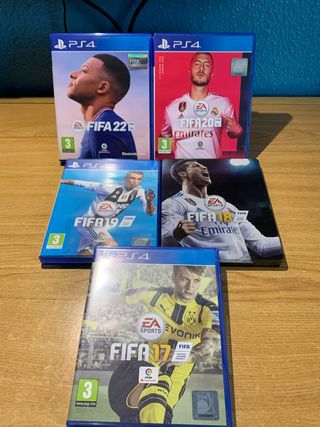 ⚽ Vivi la passione del calcio in prima persona! 🔥 Pacco 5 FIFA PS4: • FIFA 17 • FIFA 18 Ultimate Team🌟 🤩Cristiano “MR CHAMPIONS”🤩 • FIFA 19, 20 e 22🫣 💥 Partite epiche/leggendarie ti aspettano 🥺 Pura nostalgia🎩 Codici di riscatto dubbi ⚠️ ✅ Giochi in ottime condizioni 💶 22 € pacco completo – ottienili prima che spariscano! Vendo anche separatamente!!✨ Regalo perfetto per Natale!🎅🏻