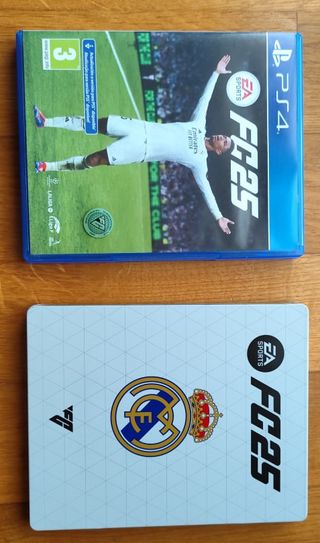 Videogioco di calcio FIFA 25 per PlayStation 4. Scatola metallica del Real Madrid inclusa. Include aggiornamento alla versione per PS5 disponibile. Classificazione PEGI 3 FC 25 FIFA25