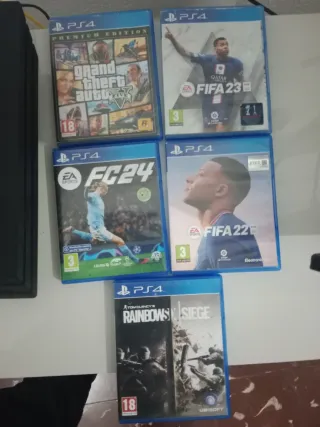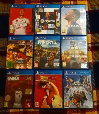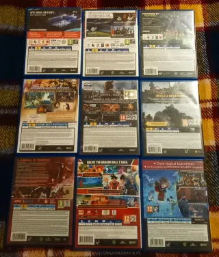 Set di 13 videogiochi per PlayStation 4. Sono versioni italiane e inglesi, ma tutti giocabili in spagnolo. Se acquisti il lote, ti regalo il supporto per il controller, che puoi acquistare separatamente a 3€. - FIFA 22 5€ - Batman: Arkham Knight 8€ - PES 4€ ciascuno - Final Fantasy XV 8€ - Ratchet e Clank 5€ - God of War VENDUTO - Uncharted 4: Fine di un Ladro 10€ - Rainbow Six 4€ - NBA 2k21 4€ - GTA V: 10€ - Borderlands 3 edizione deluxe 7€ - Assassin's Creed Origins: 8€ - FIFA 21 5€ - FIFA 17 3€ - Dragon Ball Xenoverse 5€ - Skyrim 6€ Faccio offerte per pacchetti, chiedi senza impegno.