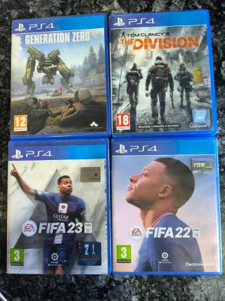 Lote di quattro videogiochi per PlayStation 4. Separatamente 5€ ciascuno Insieme 18€ i quattro - Tom Clancy's The Division - Generation Zero - EA SPORTS FIFA 22 Fifa 23 venduto..