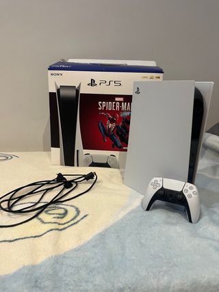 Console PlayStation con un anno e mezzo di utilizzo, senza rumori o difetti. Include console, controller DualSense e cablaggio. Edizione Comune con inserimento disco. Non include il gioco di Spider-man. Contiene scatola originale e plastici di imballaggio. Prezzo non negoziabile.