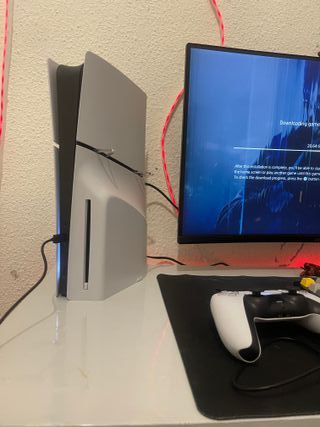 PlayStation 5 Slim. Capacità: 825 GB. Colore: bianco. Include: controller, cavo di alimentazione, cavo HDMI e cavo di ricarica del controller. Nella sua confezione originale e in perfette condizioni, praticamente non è stato usato dalla sua acquisto due mesi fa.