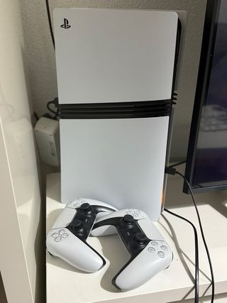 Consola PlayStation 5 Pro in bianco. Design elegante e moderno. Preferisco la vendita in persona per provarla, la PS5 è completamente nuova e perfetta, è del mio fratellino e la vendo perché non la usa più. Include due controller DualSense, cavi di connessione. SENZA SCATOLA ⚠️NESSUN BARGAINING, UN SOLO PREZZO⚠️ PERSONE SERIOSE