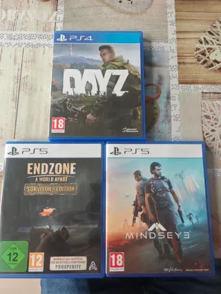 Consegna di tre videogiochi per PlayStation. - DAYZ per PS4. - Endzone: A World Apart - Survivor Edition per PS5. - Mindseye per PS5. - Tutti in PERFETTO STATO, sia le scatole che i giochi stessi.