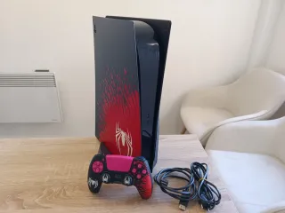 Console PlayStation 5 con un design esclusivo ispirato a Spiderman. - Cover nera con dettagli grafici in rosso e bianco. - Include controller DualSense personalizzato. - Cavo di alimentazione e cavo HDMI inclusi. - Tutto pronto per il tuo divertimento.