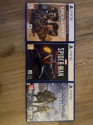 Pacchetto di tre videogiochi per PlayStation 5. - Uncharted: Collezione Legacy of Thieves (Remasterizzato) - Marvel's Spider-Man: Miles Morales - God of War Ragnarök Sono come nuovi, usati una volta ciascuno.