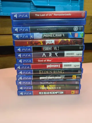 Selezione di videogiochi per PlayStation 4. - The Last of Us Remastered - Assassin's Creed Odyssey - Minecraft - Doom - Resident Evil 2 - Ark: Survival Evolved - God of War - Wolfenstein II: The New Colossus - Elden Ring (Venduto) - Grand Theft Auto V - Devil May Cry 5 - Dark Souls III - Red Dead Redemption II - Far Cry 6 Il prezzo indicato non è il prezzo dell'intero lotto, ma solo il prezzo di GTA 5. Lo stesso cliente sceglierà quali giochi acquistare o meno. Si accettano negoziazioni, più giochi scegli, maggiore sarà lo sconto.