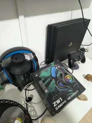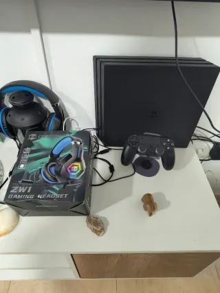 Console PlayStation 4 Pro con disco rigido da 1TB. - Modello: PS4 Pro - Colore: Nero - Capacità: 1TB. Viene con il gioco GTA 5, controller (non originale) e cuffie con microfono perfette per giocare, nuovi nella loro confezione.