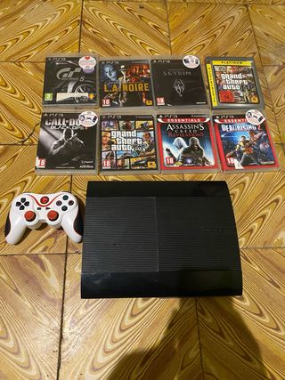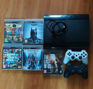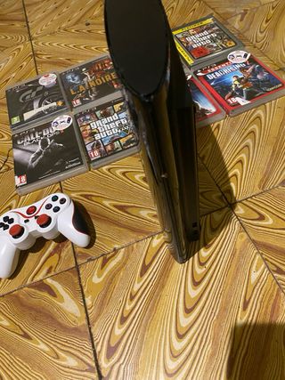 Consola PlayStation 3 Slim in colore nero, con pochissimo utilizzo. Il controller ha residui di alcune adesivi, non si notano al tatto né danno fastidio. Include controller e tutti i cavi necessari per il funzionamento. - Controller incluso. - Cavi di connessione alla TV. Giochi: 1. Fallout 3. 2. Killzone 3. 3. Prototype. 4. SBK09. 5. Tekken Tag Tournament 2. Si accettano offerte ragionevoli.