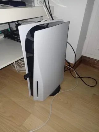Console PlayStation 5 nel suo iconico design bicolore. Colore bianco e nero. Modello standard. Con il suo cavo e il suo nuovo controller.