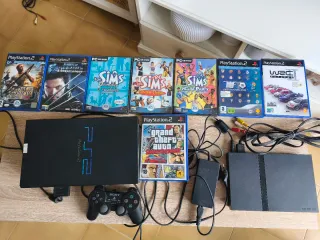 In vendita console PlayStation 2 in colore nero, con 5 videogiochi. Una è completa e l'altra solo la console. - Console PlayStation 2 - Controller DualShock 2 - Giochi inclusi: - Medal of Honor: Rising Sun - X-Men 2: Wolverine - LFP: Questo è Calcio 2005 - WRC: Rally Evolved - Grand Theft Auto (GTA) (gioco aggiuntivo) - Cavi di connessione e adattatore di alimentazione