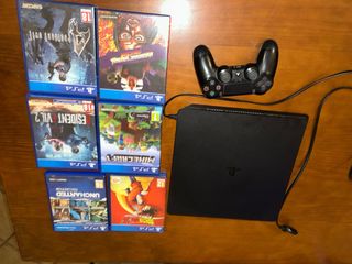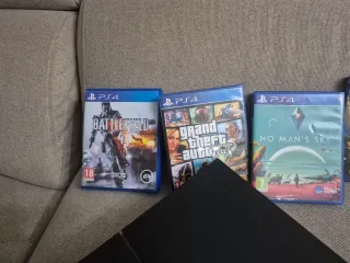 Console PlayStation 4 in colore nero. La vendo per mancanza di denaro, la console è in buone condizioni. Viene con tutti i cavi, il controller non posso venderlo perché è di un amico, la vendo con 5 giochi in ottime condizioni.
