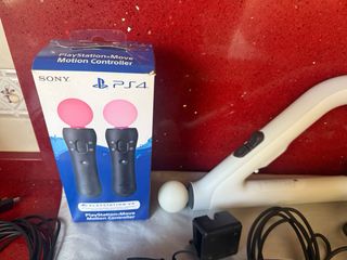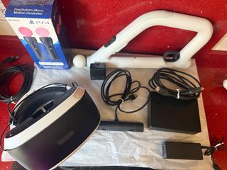 Pacchetto PlayStation VR + Aim Controller + 2 Move + Charging Station per controller Ps4 e Playstation Move Vendo un pacchetto di realtà virtuale per PlayStation composto da: -Cuffia PlayStation VR (viene fornita con un adattatore per fotocamera per collegarla a Ps5). -2 controller PlayStation Move. -Controller di mira per PlayStation VR. -Stazione di ricarica per controller PS4 e Playstation Move. Importante: il gioco PlayStation VR Worlds NON è incluso. Stato: Buone condizioni generali. Guarda le foto per i dettagli di cosa c'è nella confezione.