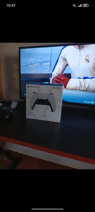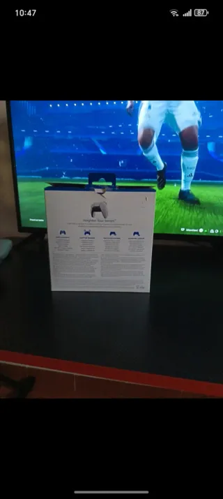 Scatola originale per il controller DualSense di PlayStation 5. - Design bianco e nero. - Logo PlayStation e Sony ben visibili.
