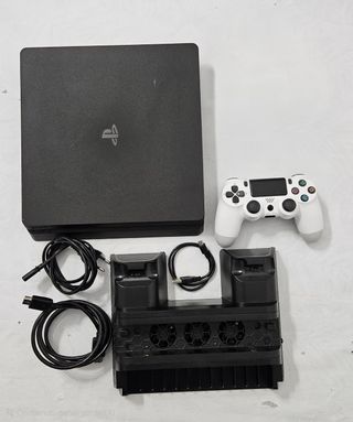 Console PlayStation 4 usata versione slim 500 Gb, completa di controller, accessori e giochi. - Console PS4 slim 500 Gb - Controller bianco NON ORIGINALE ma di buona qualità. Ci giocavo tranquillamente agli FPS - Base di ricarica per controller con ventole di raffreddamento NON ORIGINALE che permette di ricaricare due controller contemporaneamente - Cavi di alimentazione e connessione - Bundle di 14 giochi come in foto Vendo per inutilizzo in quanto sono passato alla 5.