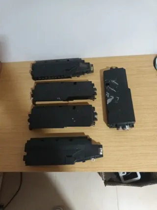 Set di controller per console da riparare o per pezzi. Include controller di vari colori e modelli, 2 per PS3, 1 Switch e PC, tutti funzionanti tranne 1, con problemi di funzionamento; i giochi funzionano, ma alcuni mancano di manuale e le loro scatole sono molto usurate. - Due controller neri PlayStation 3 - Un controller rosso - Un controller nero con logo HYCARUS - Alimentatore Xbox 360 slim (non emette luce)