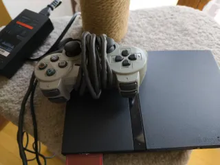 Consola PlayStation 2 in colore nero, pronta per l'uso. In perfette condizioni. Possibilità di includere TV al plasma da 42" Panasonic con euroconnessore per 40€ in più. Include due controller, due videogiochi: PES 6 e Pro Evolution Soccer 3, e tutti i cavi necessari per la connessione, incluso l'euroconnessore.