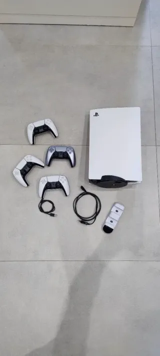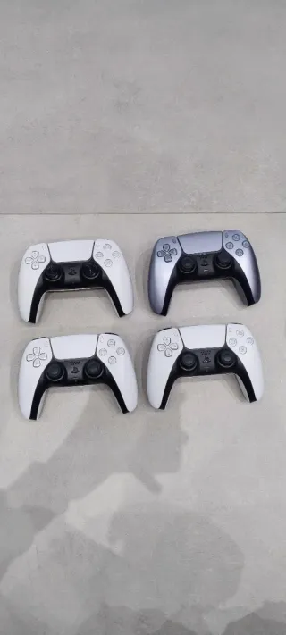 PlayStation 5 (versione con lettore disco) perfettamente funzionante. Compresa di: 4 controller DualSense originali (3 bianchi + 1 argento) Base di ricarica doppia per DualSense + cavo Cavo di alimentazione PS5 Cavo di alimentazione base di ricarica Condizioni: La console è completamente funzionante. Base di appoggio con una piccola imperfezione: una parte si era rotta ma è stata riattaccata con colla → estetica, non influisce sull’uso. I 3 controller bianchi mostrano normali segni di usura sul retro (aloni neri da uso), tastini ok. Il DualSense argento esteticamente messo meglio. Tutti e 4 i controller sono funzionanti al 100%.