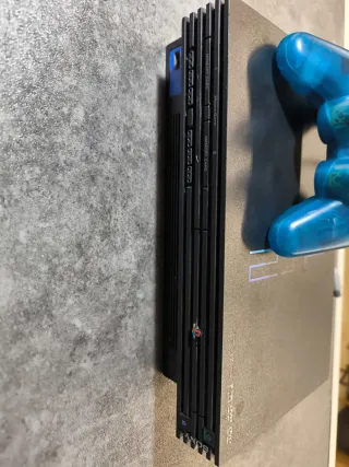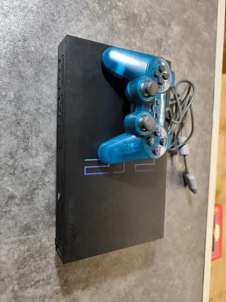 Console per videogiochi PlayStation 2 con controller trasparente blu. - Console di colore nero. - Controller cablato trasparente blu. Cavi video e alimentazione inclusi.