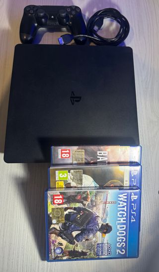 Sony PlayStation 4 Slim 500GB Console - Jet Black Con Joestick Giochi e hdmi - Include i giochi: BATTLEFIELD 1, WATCH DOGS 2 e un altro titolo. - Controller wireless DualShock 4. - Cavo di alimentazione e cavo HDMI inclusi.