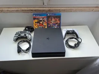 Console PlayStation 4. - Console di colore nero. - Include due giochi: One Piece: Pirate Warriors 3 e Sonic Forces. - Include un controller DualShock 4. - Include un controller DualSense. - Include cavi di alimentazione e di ricarica.