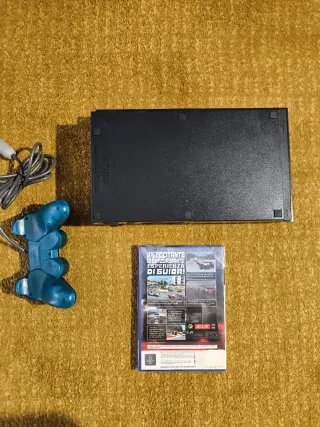 Funzionante testata. Vendo console PlayStation 2 completa di controller e gioco e cavi alimentazione. No cavo video - Console PlayStation 2 - Controller blu - Gioco Grand Prix Challenge