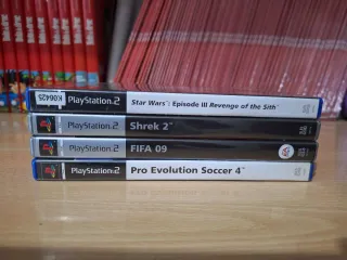 Pacchetto di 4 videogiochi per PlayStation 2. - Star Wars: Episode III Revenge of the Sith - Shrek 2 - FIFA 09 - Pro Evolution Soccer 4 - Manuale di istruzioni