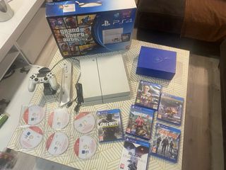 Console PlayStation 4 da 1TB (originariamente 512, espansa a 1 TB) in colore bianco, con due controller e molti giochi, alcuni ancora sigillati, e altri, anche se privi di confezione, sono originali. Uno dei controller ha il joystick destro che funziona un po' male, non l'ho controllato perché gioco di solito da solo, ma non credo sia difficile regolarlo. - Supporto caricatore per i due controller - Giochi inclusi: FIFA 14, Call of Duty: Advanced Warfare, Far Cry 4, Destiny, The Division, Killzone: Shadow Fall e altri - Supporto verticale per la console - Scatola originale della console Vendo per cambio a PS5