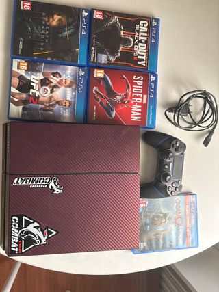 Console PlayStation 4 con disco rigido da 1 TB. Include un controller e vari giochi. - Poco uso. - Colore nero.
