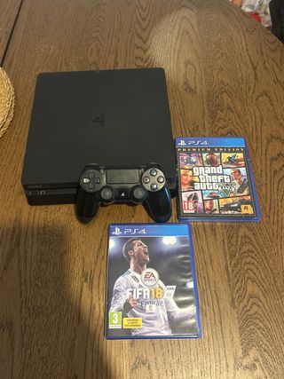 Consola PlayStation 4 Slim in colore nero, con due controller DualShock 4 e vari videogiochi. Include i giochi: FIFA 17, FIFA 20 e Uncharted: The Nathan Drake Collection. Due controller wireless neri. Cavo di alimentazione. Quasi nuovo e in perfette condizioni. Accetto scambi e prezzo negoziabile.
