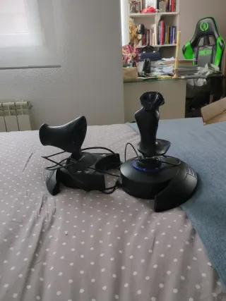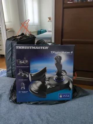 Joystick e acceleratore Thrustmaster T.Flight Hotas 4 per PS4 (e credo che PC). Prezzo originale 75 euro. Mai usato. Joystick smontabile. Sistema di timone di direzione integrato nell'acceleratore. Resistenza del joystick regolabile.