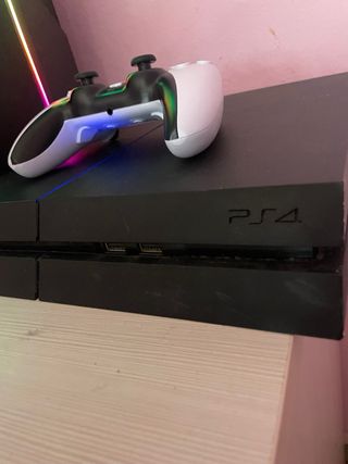 Vendo PS4 in buone condizioni con due controller e base di ricarica per i controller. Uno dei controller ha un problema con il joystick, ma spostandolo un po' si può continuare a giocare. A parte questo, tutto funziona perfettamente. Per ulteriori informazioni, contattatemi tramite chat. Grazie.