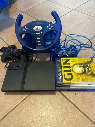PlayStation 2 + volante PlayStation Tutto funzionante come da foto✅ 2 joystick inclusi✅ Con cavi inclusi✅ Giochi inclusi✅ Memory card inclusa✅ Spedizione in un giorno🚚