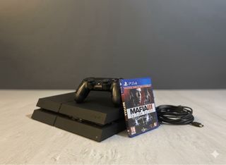 Console PlayStation 4 in colore nero, insieme a un controller DualShock 4 e il videogioco Mafia III Deluxe Edition. Il joystick sinistro manca della gomma, ma non influisce sul funzionamento. Include console PlayStation 4 da 500 GB, controller DualShock 4 e gioco Mafia III Deluxe Edition. La console funziona perfettamente ed è stata curata. Ideale per il gaming a casa o come regalo.