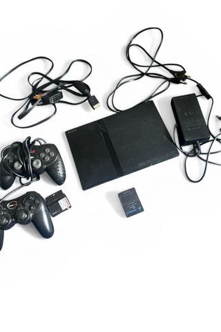 Console di videogiochi classica in colore nero. Non ho idea di configurarla, deve essere una sciocchezza ma non ci voglio perdere la testa. Due controller originali, multitap per 4 giocatori e 4 memoricards nuovi, gioco PRINCE OF PERSIA l'anima del guerriero e cavo di connessione originale e cavo di alimentazione, la scatola è della SLIM, ma ci sta perfettamente. Posso includere un convertitore da PS2 a HDMI e cavo HDMI per 10€ in più, regalo un altro controller originale in ottime condizioni, basta sostituire un joystick. Non accetto resi, è tutto molto chiaro scritto e in foto. Solo gli accessori valgono una fortuna. Prezzi negoziabili.