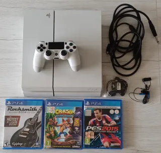 ●Console PlayStation 4 con disco rigido da 1TB. ●Curata con cura, senza urti o errori. I pulsanti per spegnere il sistema ed estrarre il disco funzionano perfettamente ● Impostazioni di fabbrica - Modello PS4. - Colore nero. - Controller originale PS4 - Cavo di alimentazione - HDMI - Cavo ethernet - Non ho il cavo per collegare il controller alla PS4. - Il controller ha leggermente il joystick sinistro verso l'alto. Ma lo sto usando ora per GT7 e funziona perfettamente