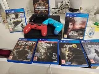 Vendo console PlayStation 4, 1 TB completa di accessori e giochi. La console fa un ronzio quando si accende per poco tempo un minutino poi ritorna silenziosissima . Senza scatola originale. Solo PlayStation 4 da 1000gb con controller 100€ - Console PlayStation 4 - 3 joystick (1 rosso, 1 blu, 1 nero) - 7 giochi per PS4: - Call of Duty: Infinite Warfare Legacy Edition - Call of Duty: Black Ops III - Fallout 4 - Fallout 76 - Metro Exodus - Get Even - Dead Rising 4