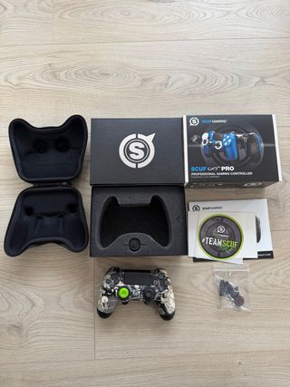 Controller Scuf Gaming Pro per PS4 e PC. Include custodia rigida e accessori. - Controller Scuf Gaming Pro. - Custodia di trasporto rigida. - Scatola originale. - Inserto in schiuma per il controller. - Adesivo #TeamScuf. - Accessori aggiuntivi. Potrebbe aver bisogno di nuovi joystick, manca la regolazione della corsa di uno dei grilletti.