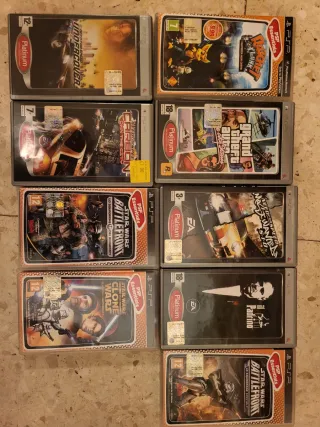 Lotto di 9 giochi per PSP Completi . Prezzo Singolo 8€, Intero lotto 54€ Ritiro A Mano Su Roma - Ratchet & Clank: L'Era Glaciale - Grand Theft Auto: Liberty City Stories - Need for Speed: Most Wanted - Il Padrino - Star Wars: Battlefront - Need for Speed: Undercover - Need for Speed: Carbon - Star Wars: Battlefront - Star Wars: The Clone Wars