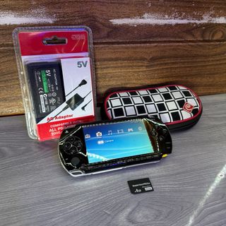 Perfetta PSP 3000 con caricabatterie nuovo, giochi, custodia e scheda di memoria per installare i tuoi giochi preferiti 🥳 Non include batteria 😇