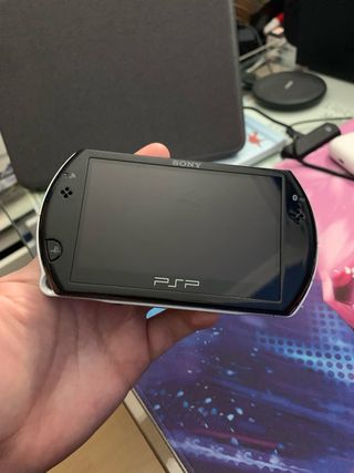 Console portatile PSP Go in colore nero. Design compatto ed elegante. Schermo più nitido delle altre PSP. Funzionale. Buono stato della batteria. Include gioco GTA preinstallato. Console con Ark-4. Ottimo stato del case e dell'aspetto. Include cavo USB per connettore PSP Go e caricatore con spina. Difetti da notare: il joystick non funziona correttamente, il connettore della scheda sembra danneggiato. Ha lievi graffi sullo schermo ma non influisce sul gameplay. Manca un pezzetto di plastica del pulsante L che si è rotto (visibile nelle immagini), non influisce sul gameplay.
