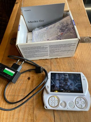 Console portatile PSP Go in colore bianco. Ideale per portare i tuoi giochi ovunque. Design compatto ed elegante. Schermo nitido per un'esperienza visiva coinvolgente. 16 GB di memoria interna con giochi. Caricatore incluso non originale.