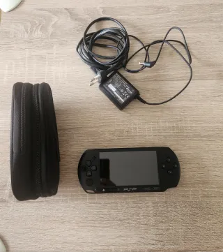 Console portatile Sony PSP in colore nero, ideale per parti o riparazione. Incluso caricatore e custodia. - Custodia di trasporto. - Caricatore di corrente. Non ha batteria, prezzo poco negoziabile.