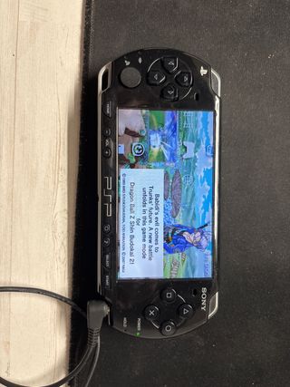 Console portatile in colore nero, pronta per giocare. Include caricatore e quattro giochi. Gioco: Dragon Ball Z Shin Budokai 2 È rimasta ferma a lungo e la batteria non funzionerà bene, devi tenerla collegata, una batteria originale costa 8€ circa su AliExpress ed è estremamente facile da sostituire, viene con la scatola, i manuali, tutto.